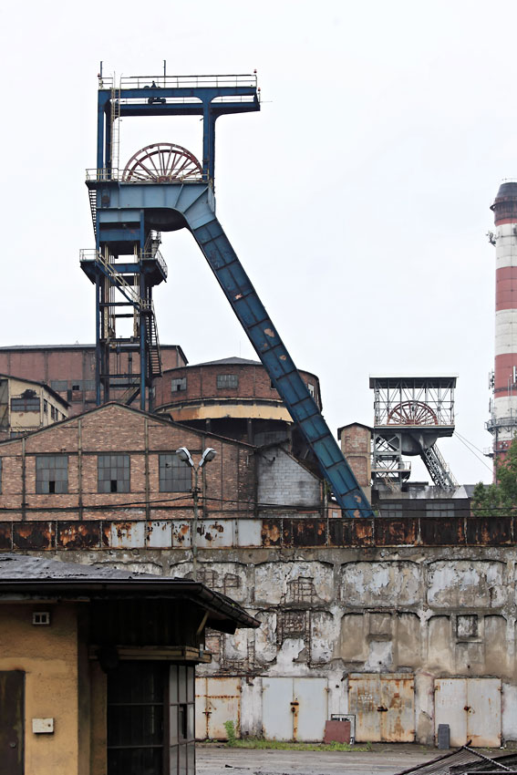 28/05/2013 | Siège Mysłowice - Chevalements et recettes des puits Sas et Łokietek vus depuis le portail d'entrée
