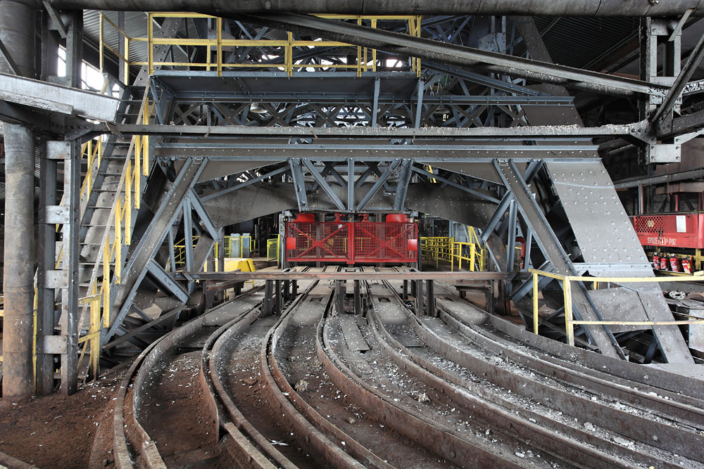 30/08/2013 | Siège Mysłowice - Recette jour du puits Łokietek, circuit des berlines ; on peut voir les poussards du chevalement
