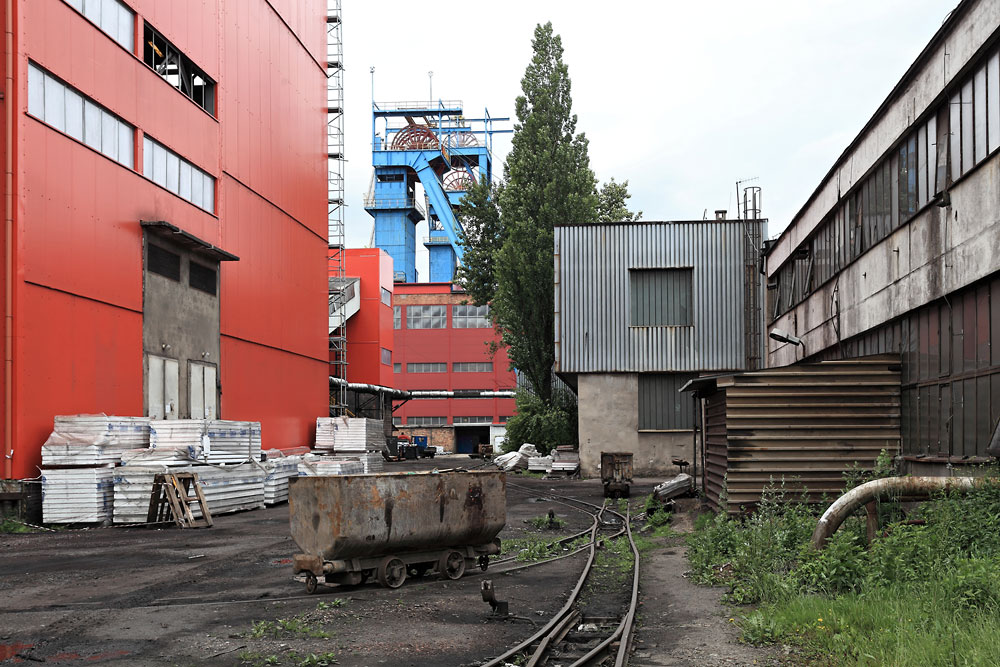 09/06/2015 | Siège Wesoła - Voie étroite pour le transport du matériel sur le carreau, ici au pied de la tour d'extraction du puits Karol