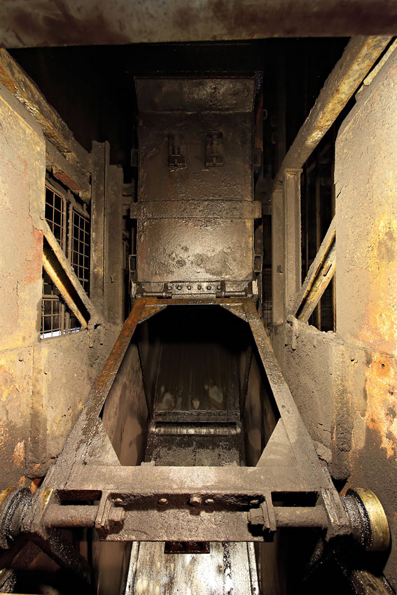 09/06/2015 | Siège Wesoła - Un skip en position de déchargement au niveau de la recette jour du puits Karol