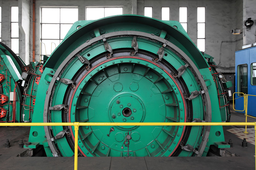 09/06/2015 | Siège Wesoła - Machines d'extraction en haut de la tour du puits Karol : détail sur un moteur électrique