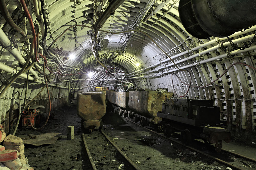 09/06/2015 | Siège Wesoła - Berlines chargées de matériel dans un travers-banc vers la recette fond puits Piotr (étage 865m)