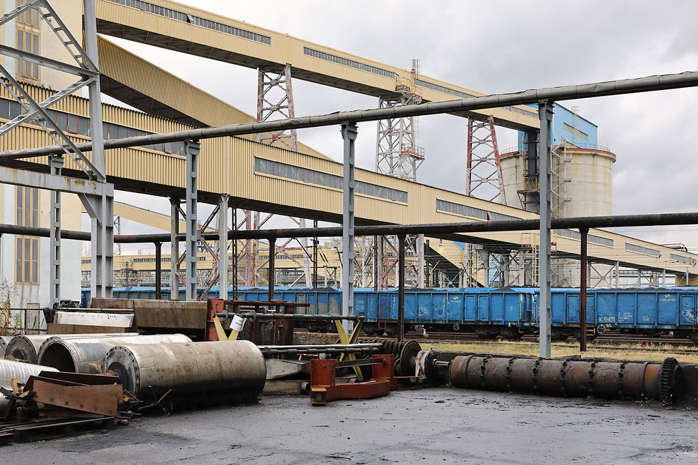 18/11/2024 | Convoyeurs à bande du lavoir et passerelle au-dessus des voies ferrées ; à droite silos de stockage du charbon