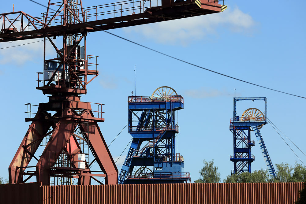 06/06/2016 | Une grue du parc à matériel et chevalements des puits Julian II et IV