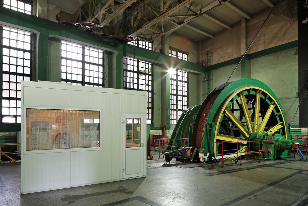 03/08/2017 | Machine d'extraction 'est' du puits Julian I (poulie Koepe monocâble) - à gauche la cabine du machiniste