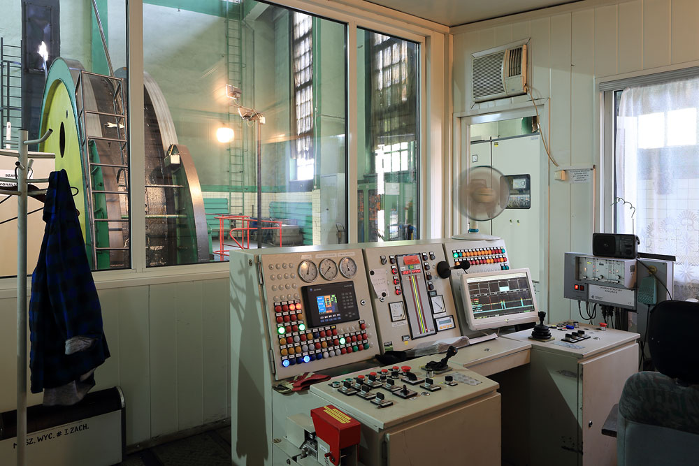 03/08/2017 | Machine d'extraction 'ouest' du puits Julian I (poulie Koepe monocâble) - cabine du machiniste