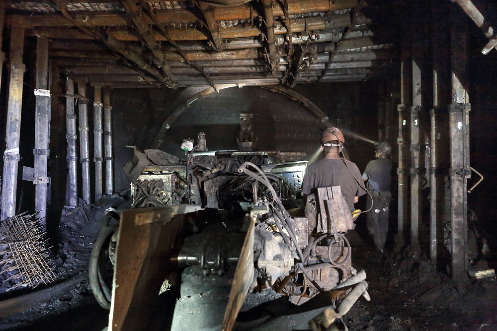 03/08/2017 | Chantier de traçage d'une galerie dans la couche de charbon - mineur au commande du mineur continu