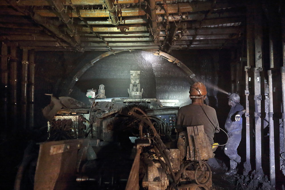 03/08/2017 | Chantier de traçage d'une galerie dans la couche de charbon - mineur au commande du mineur continu