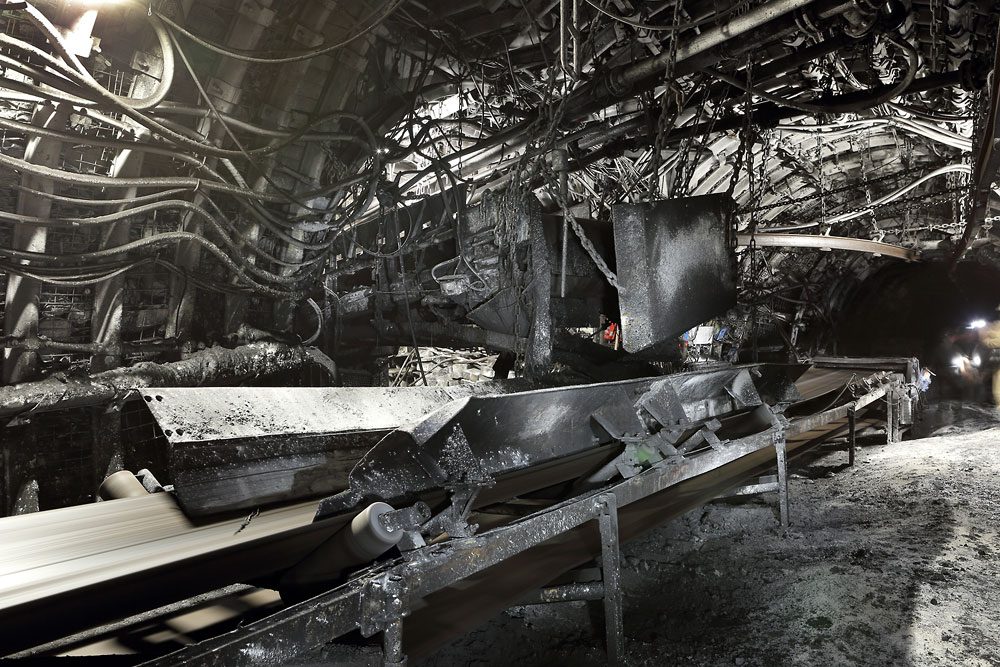 02/08/2017 | Le convoyeur en provenance de la taille déverse le charbon sur un convoyeur à bande