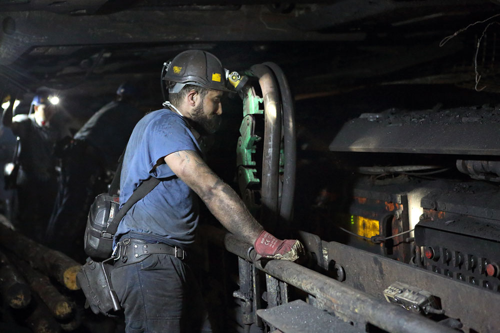 02/08/2017 | Mineur dans la longue taille, devant le poste de commande de la haveuse dont on aperçoit la télécommande en bas à droite