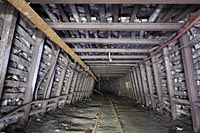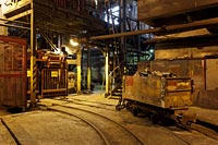 De retour à la surface, nous avons pu descendre à l'étage 600 du puits Leon III pour découvrir un grand atelier de mécanique. Puis nous sommes remontés à l'étage 400, qui ne sert plus que pour l'aérage de la mine. Ce niveau ancien présente encore de nombreuses traces de l'époque allemande. Enfin nous avons rejoint à pied le puits Leon II, en cheminant dans les travers-bancs de l'étage 400.