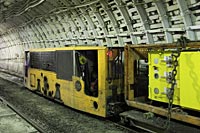 Notre visite au fond a commencé par les alentours du puits Leon IV à l'étage 960, nous permettant de voir 2 différents systèmes de transport. Nous avons alors rejoint l'étage 1150 pour découvrir les travaux de ravalement du puits Leon IV, réalisés sans interruption du service par ce puits.