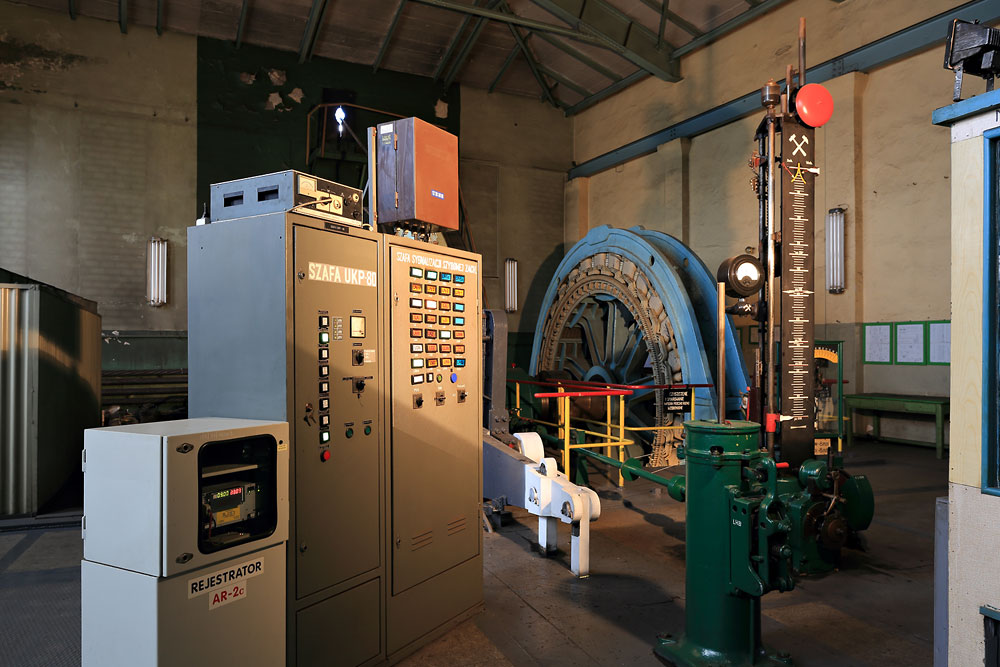 07/04/2017 | KWK Anna : machine d'extraction 'ouest' du puits Chrobry I - à droite l'indicateur de profondeur