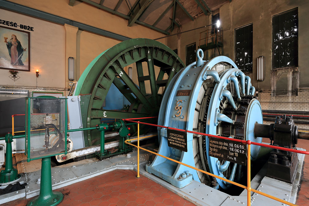 07/04/2017 | KWK Anna : machine d'extraction 'est' du puits Chrobry I - à gauche l'enregistreur de cordées