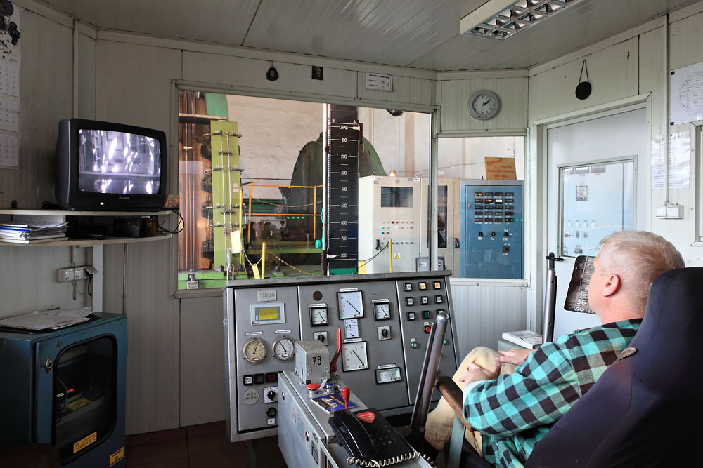 11/06/2015 | KWK Rydułtowy : machine d'extraction 'nord' du puits Leon II - le machiniste à son poste de travail