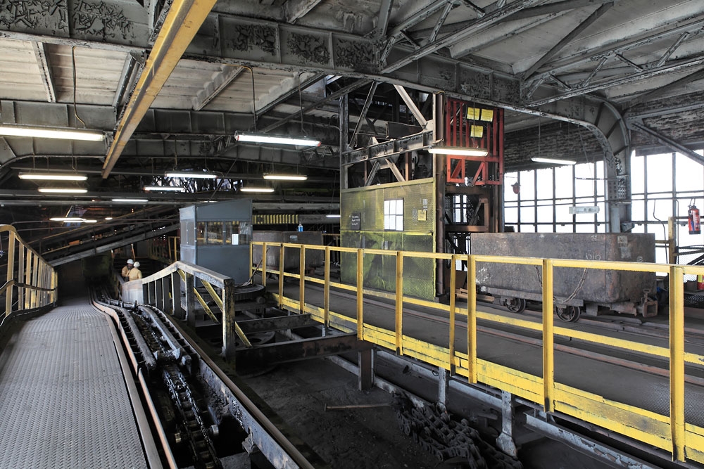11/06/2015 | KWK Rydułtowy : recette jour du puits Leon II - chaîne releveuse et monte-charge sur le circuit des berlines