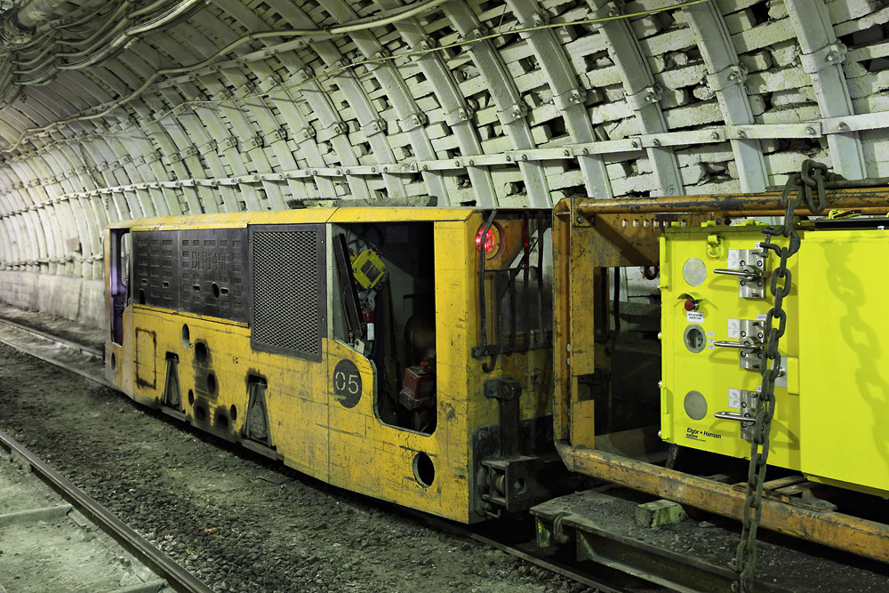 11/06/2015 | KWK Rydułtowy : locomotive diesel Ferrit DLP140F dans un travers-banc vers la recette fond (étage 960) du puits Leon IV
