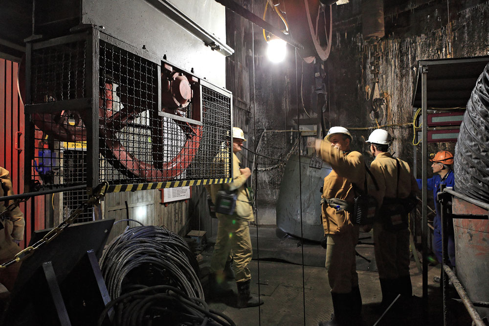 11/06/2015 | KWK Rydułtowy : accès au puits Leon IV pour les travaux d'approfondissement, sous un plancher de protection