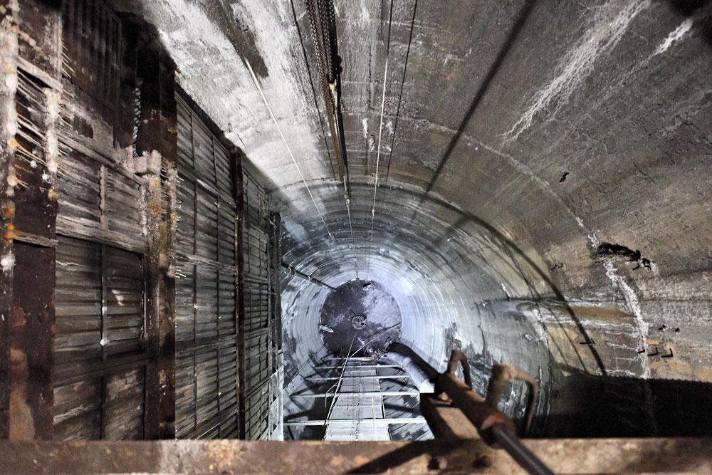 11/06/2015 | KWK Rydułtowy : vue plongeante sur les derniers mètres du puits Leon IV, en cours d'approfondissement