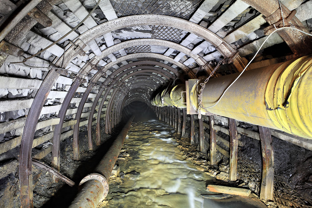 11/06/2015 | KWK Rydułtowy : galerie utilisée pour l'exhaure, vers la salle des pompes du puits Leon II (étage 400)