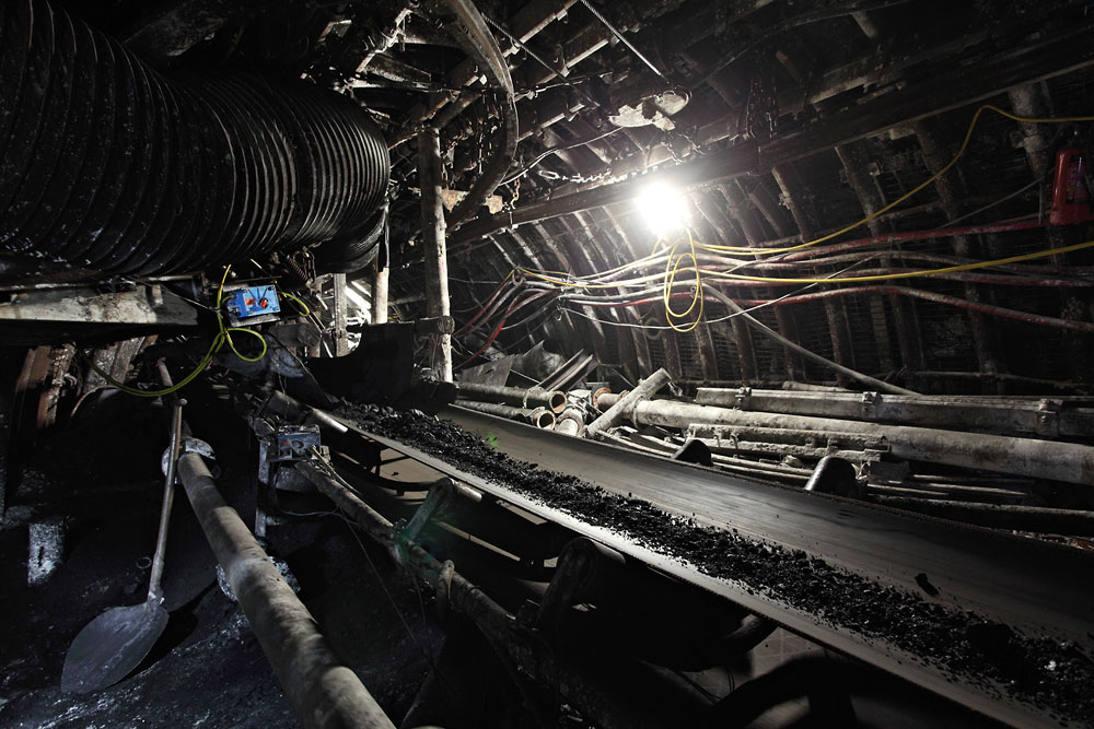 30/08/2013 | Le charbon extrait lors du traçage des galeries est évacué par ce convoyeur à bande