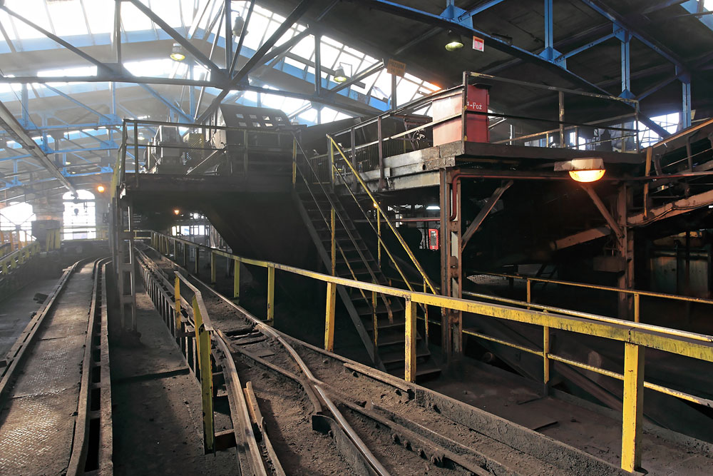 30/08/2013 | Recette jour du puits Pułaski : le circuit des berlines avec à droite le début des installations de traitement du charbon brut