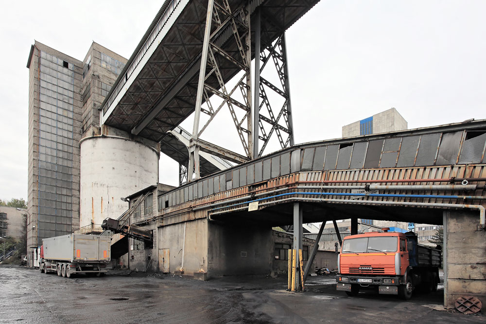 25/09/2015 | Siège Śląsk : silos de stockage du charbon brut et convoyeurs à bande près du lavoir