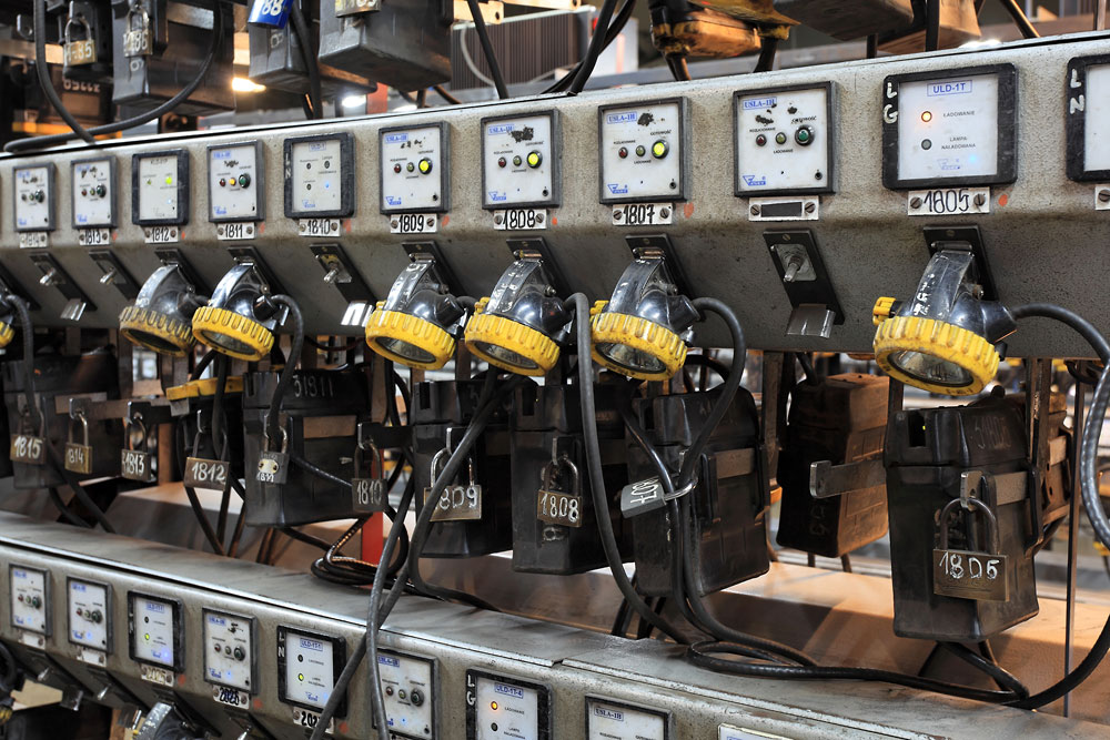 25/09/2015 | Siège Śląsk : la lampisterie - détail sur un banc de charge et ses lampes