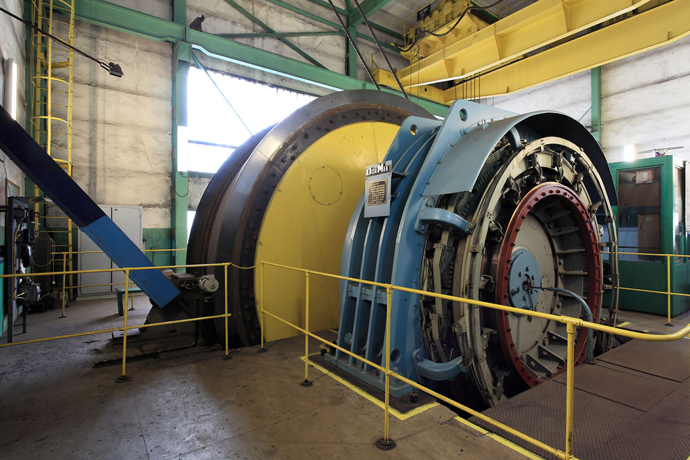 25/09/2015 | Siège Śląsk : machine d'extraction 'ouest' du puits I - poulie Koepe bicâble entraînée par un moteur électrique