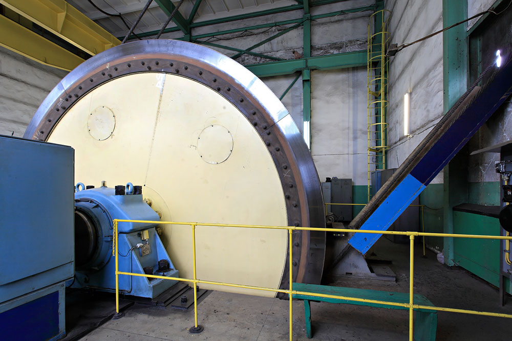 25/09/2015 | Siège Śląsk : machine d'extraction 'est' du puits I - détail sur la poulie Koepe bicâble