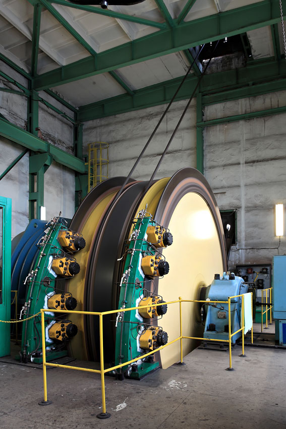 25/09/2015 | Siège Śląsk : machine d'extraction 'ouest' du puits I - poulie Koepe bicâble et ses freins hydrauliques
