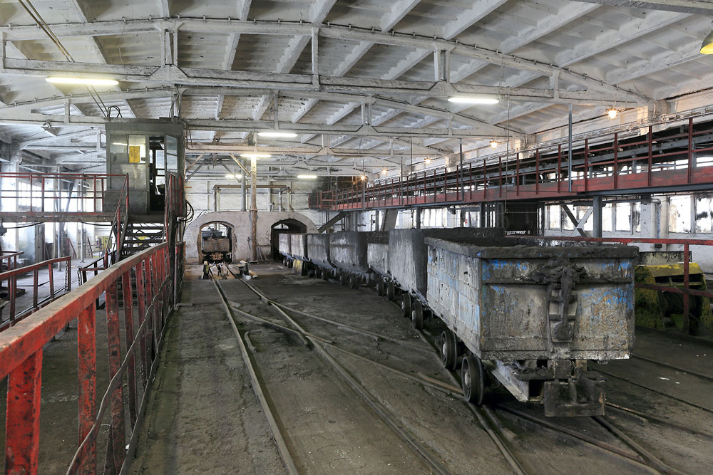 05/04/2017 | Recette jour du puits II (côté décagement) : berlines vides provenant du fond ; en arrière plan les culbuteurs