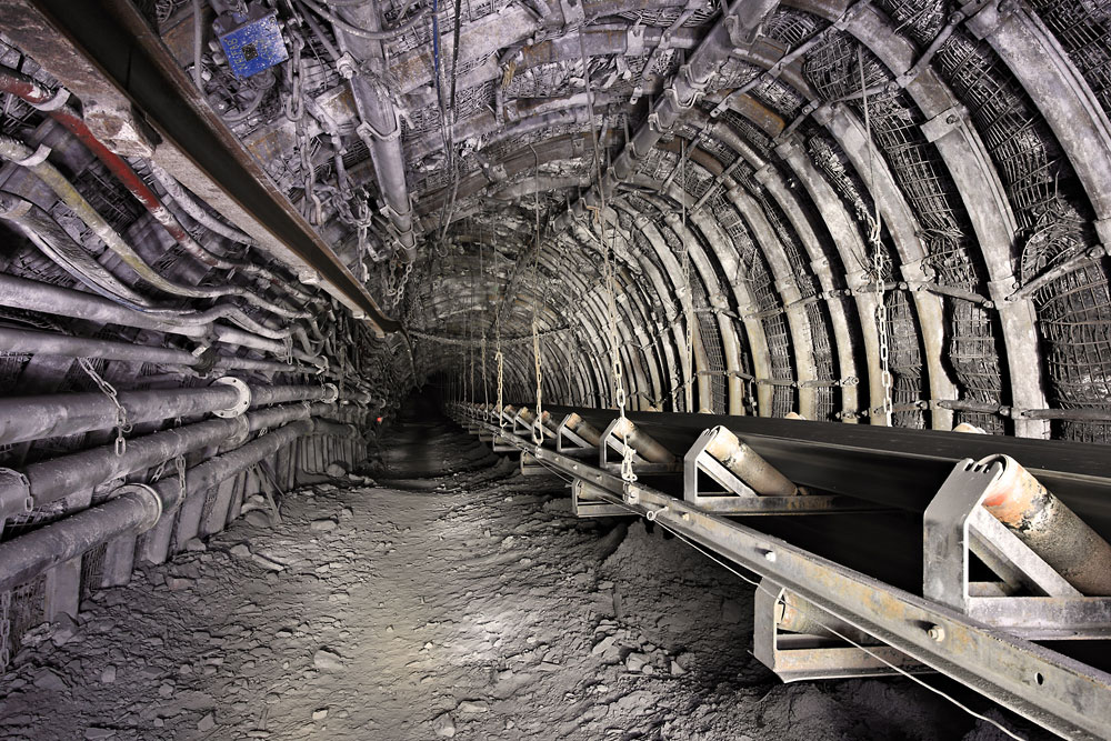 09/10/2014 | En chemin vers la taille, le long d'un convoyeur à bande ; notez la déformation du toit sous l'effet des pressions de terrain