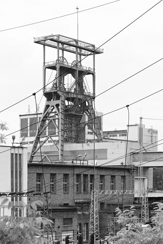 01/06/2013 | KWK Borynia-Zofiówka-Jastrzębie, siège Jas-Mos : chevalement portique du puits I ; au fond le lavoir
