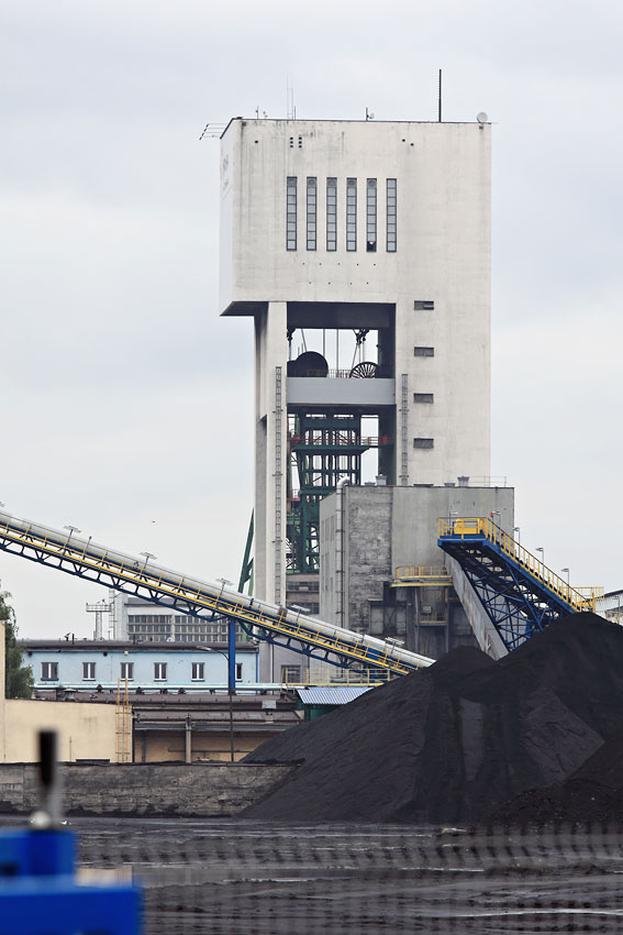 01/06/2013 | KWK Borynia-Zofiówka-Jastrzębie, siège Zofiówka : stock de charbon et tour d'extraction du puits II