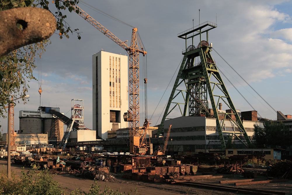 30/08/2013 | KWK Halemba-Wirek, siège Halemba : parc à matériel, tour d'extraction et chevalements des puits Grunwald III, IV et II