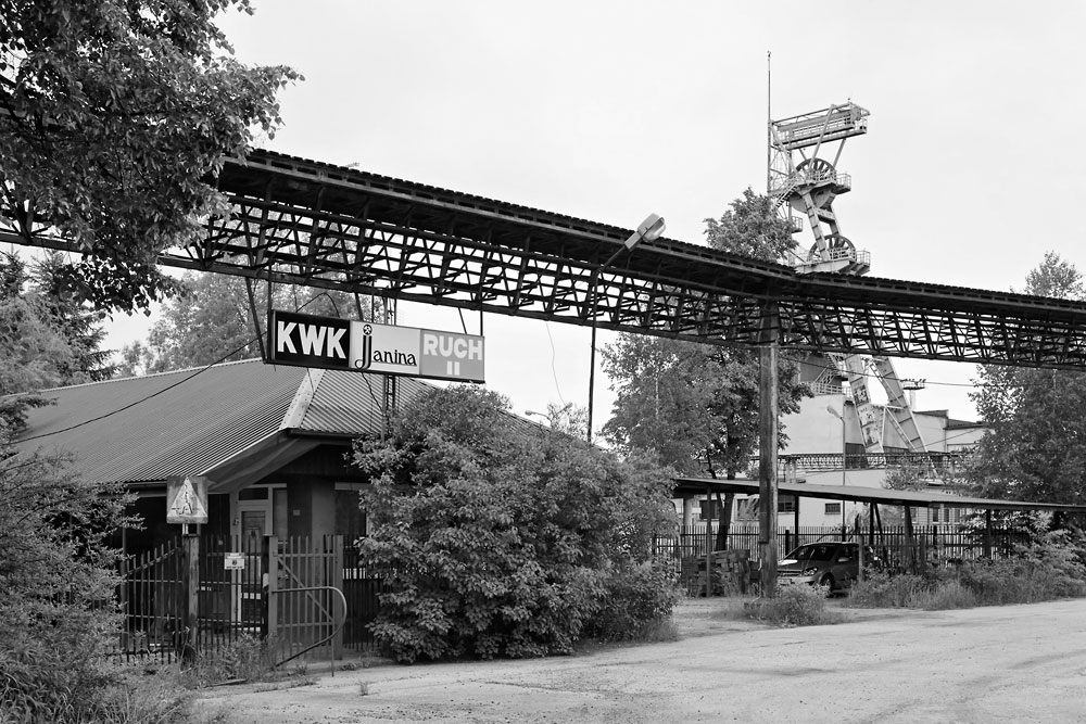 27/05/2013 | KWK Janina, siège II : poste d'entrée du carreau ; au fond à droite, chevalement du puits V