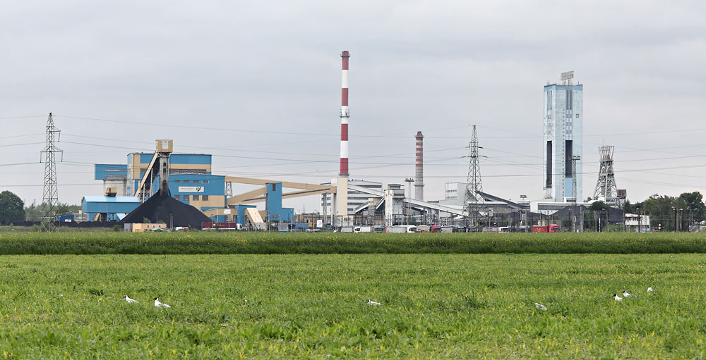27/05/2013 | KWK Piast : vue sur les installations minières (lavoir, tour d'extraction du puits II et chevalement portique du puits I)