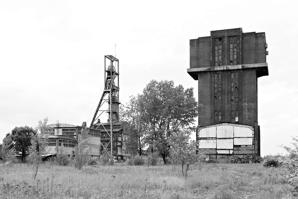 29/05/2013 | KWK Szombierki : chevalement, recette, bâtiment de la machine d'extraction du puits Ewa ; tour d'extraction du puits Krystyna