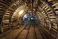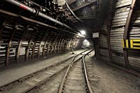Lors d'une seconde visite, nous avons eu l'opportunité de découvrir le secteur Est de la mine. Pour rejoindre le fond, nous avons emprunté le puits Helena situé sur le carreau Piłsudski jusqu'à l'étage principal de la mine au niveau 500. La particularité de ce secteur est de posséder un roulage électrifié utilisé pour le transport du personnel et du matériel. Les quartiers d'exploitation sont en effet assez éloignés des puits. Sur le réseau secondaire, non électrifié, seules des locos diesel sont en service. Enfin la liaison terminale avec les chantiers est assurée par des monorails diesel suspendus au toit des galeries. Nous avons pu longuement observer un chantier de traçage d'une nouvelle galerie à l'aide d'un mineur continu, avant de visiter les ateliers de maintenance du matériel roulant (monorails, locos électrique et diesel). Sur le chemin du retour nous avons pu apercevoir la recette fond du puits Karolina.