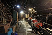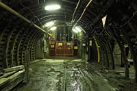 Le charbon est extrait à la haveuse dans trois longues tailles : une dans le champ Sobieski (celle visitée ici) et deux dans le champ Piłsudski. Avant de remonter au jour, nous avons pu voir l'atelier où est entretenu le matériel roulant (locos et monorails).
