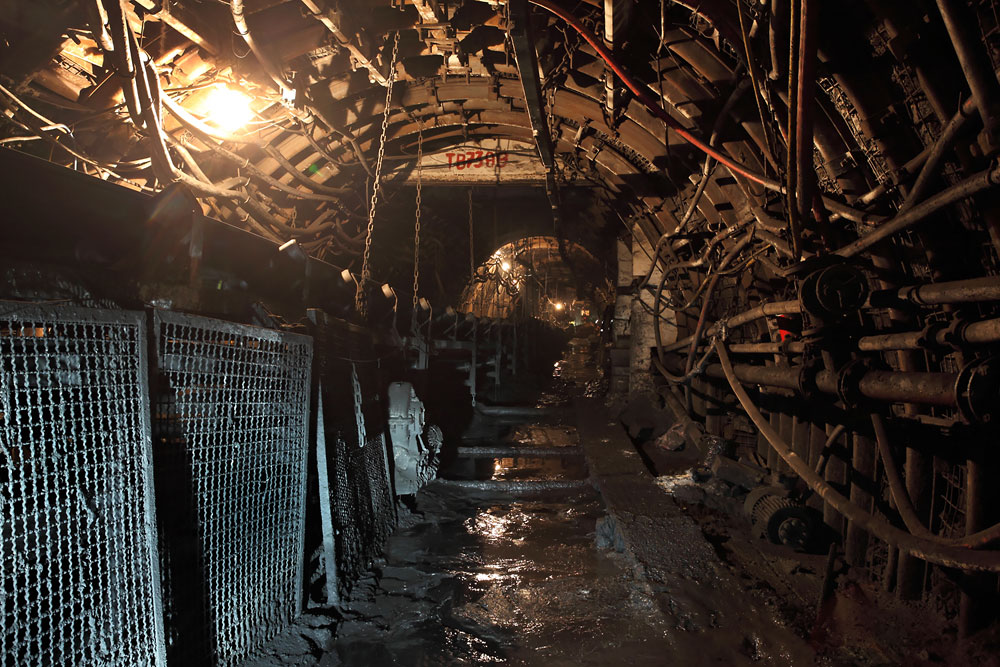26/08/2013 | Siège Sobieski : nous poursuivons notre progression dans ce travers-banc vers la taille, le long d'un convoyeur à bande