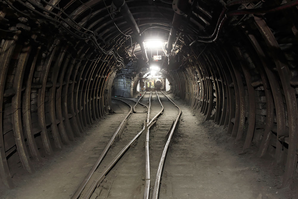26/08/2013 | Siège Sobieski : le travers-banc principal, équipé d'une double voie de roulage ; le puits se trouve au fond