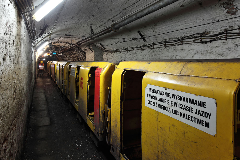 08/10/2014 | Siège Piłsudski : train pour le personnel dans la gare près du puits Helena, à l'étage 500