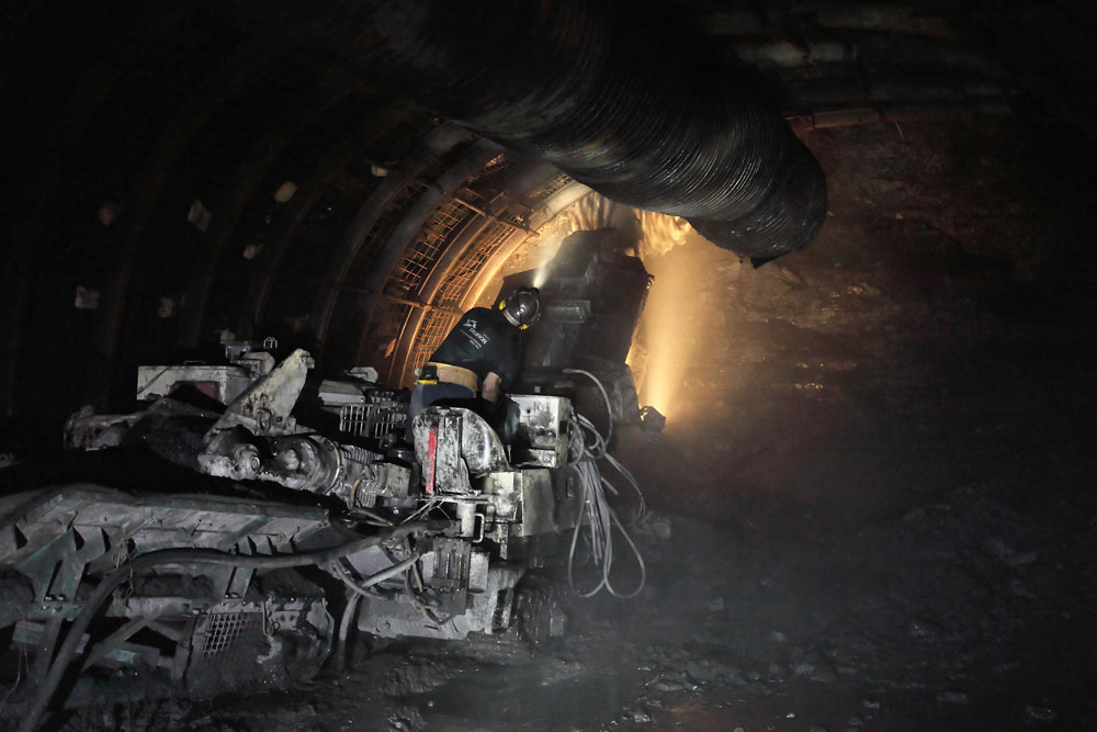 08/10/2014 | Siège Piłsudski : traçage d'une galerie dans la couche de charbon à l'aide d'un mineur continu Remag R-130