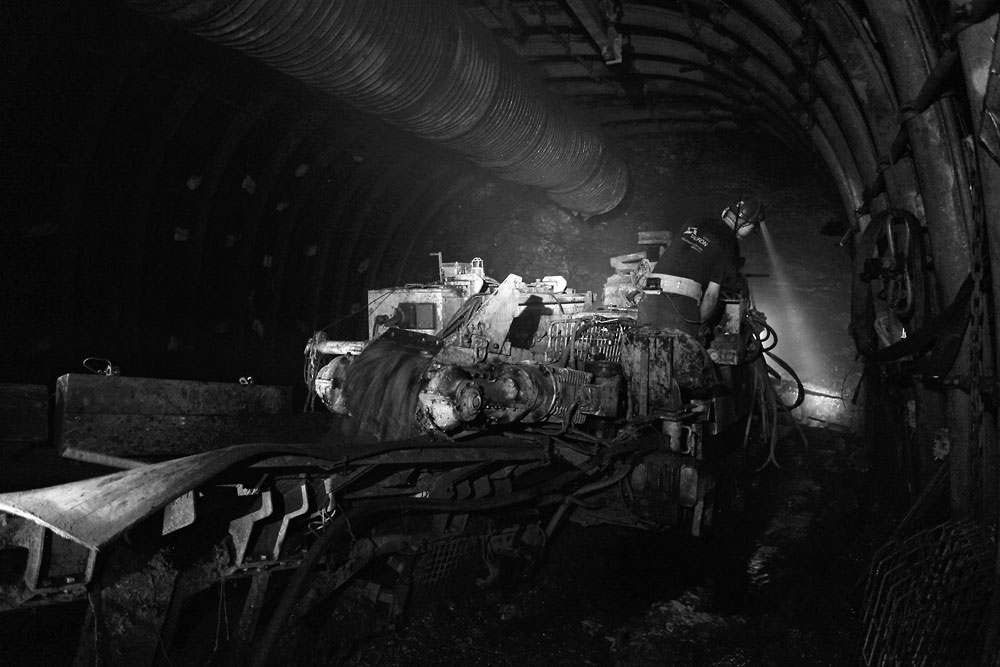 08/10/2014 | Siège Piłsudski : traçage d'une galerie dans la couche de charbon à l'aide d'un mineur continu Remag R-130