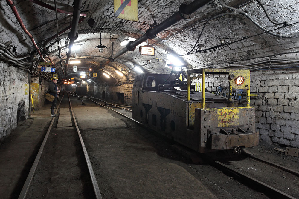08/10/2014 | Siège Piłsudski : loco électrique Konstal LD-30 dans le roulage principal à l'étage 500, près du puits Helena