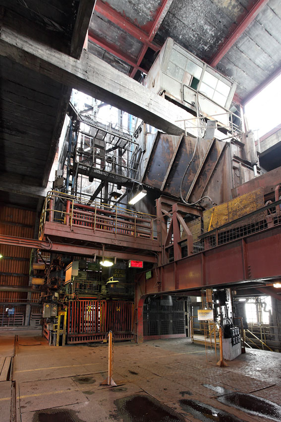 08/10/2014 | Siège Piłsudski : recette jour du puits Helena ; le compartiment de droite est équipé d'une trémie pour vider les skips