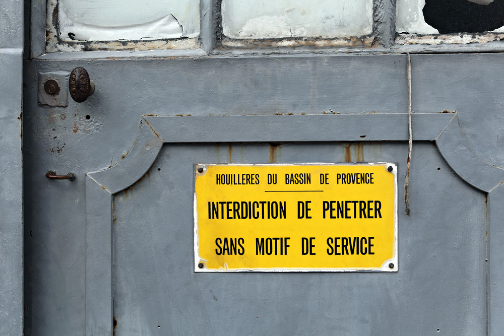 11/03/2011 | Panneau d'avertissement sur la porte de la salle des machines du puits Hély d'Oissel - Gréasque