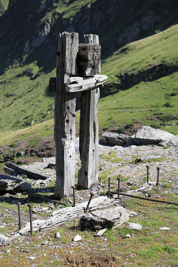 26/08/2021 | Vestige d'un pylône en bois du câble aérien au niveau d'une station intermédiaire